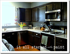 Linda from It all started with paint had a great kitchen makeover as well along with her entryway but I loved the kitchen transformation.