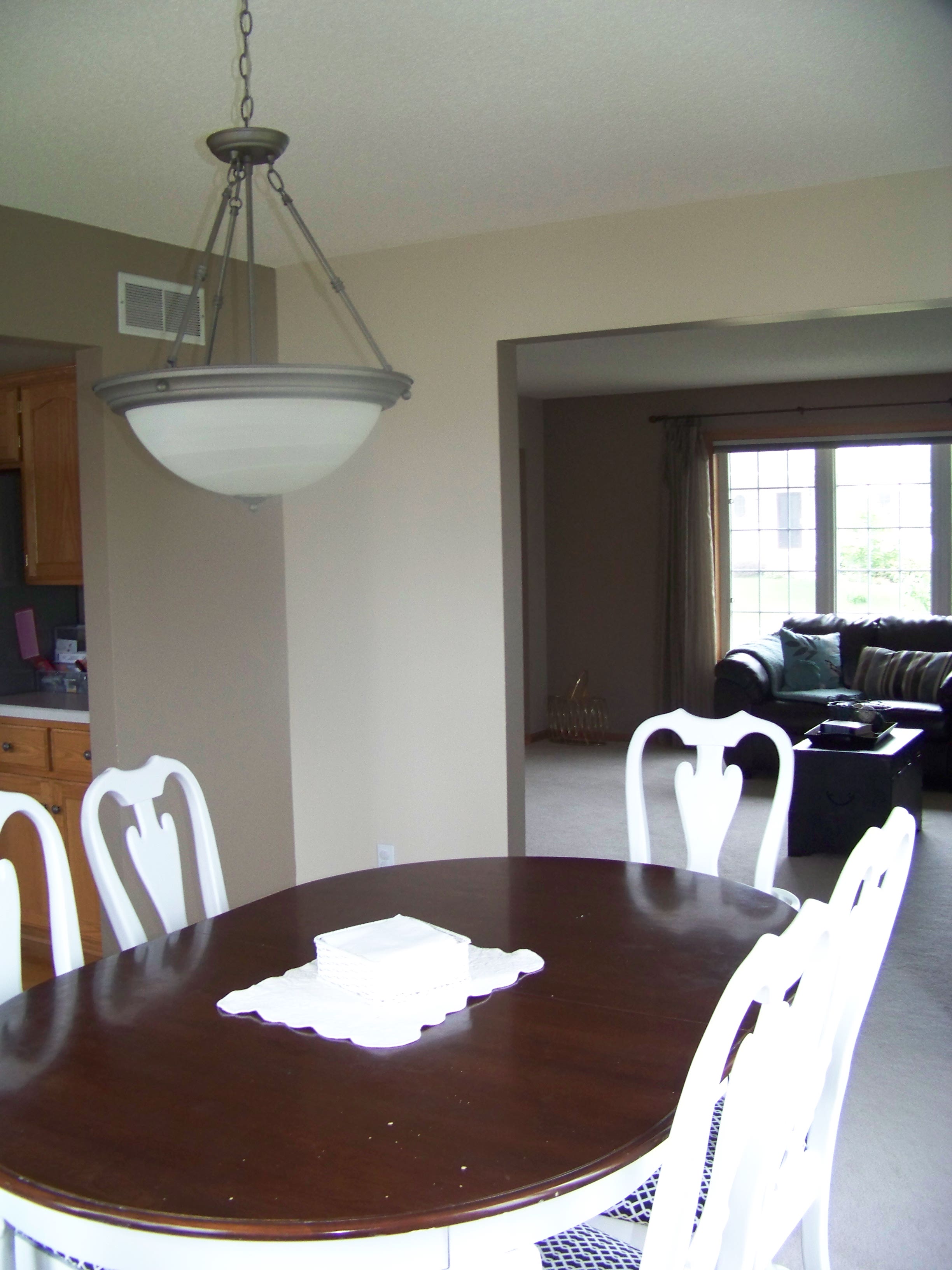 The dining room has had a few changes, mainly the giant mothership boob light is gone and a new paint color on the walls. Still need some curtains in here. The french doors really give it such an elegant look, I love it!