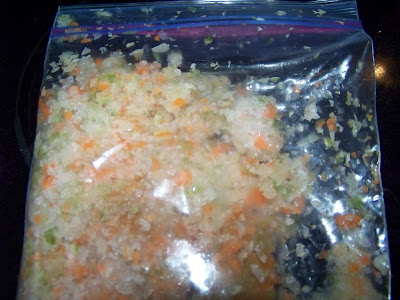 I didn’t include a picture of the carrots, celery and onion in with the ingredients because I usually have them already chopped up in a bag in the freezer. So here they are: