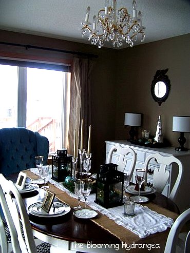 I really enjoyed putting this table together and having a little adult space in my otherwise kid friendly environment.  It was fun and I think I am going to try my hand at tablescaping again! Maybe next time I’ll include the siverware too! My plain jane everyday stuff just didn’t look quite right with the table decor and place settings so know I’m going to be keeping my eye out for some fun mis-matched but “fancy” silverware!