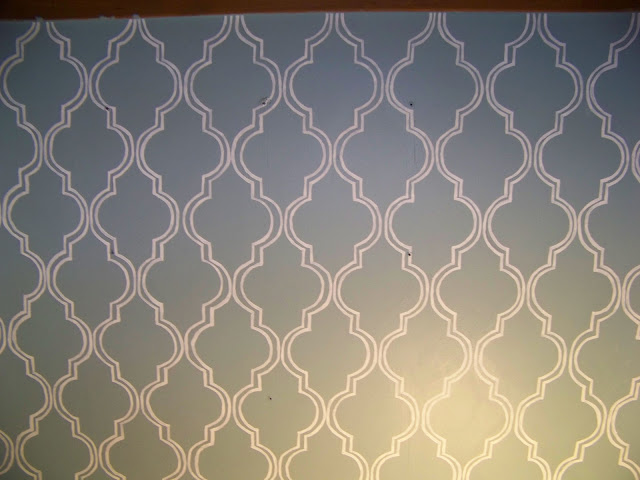A few weeks ago I came across Emily’s post over at Jones design company and fell in love with her “painted walllpaper.” I instantly knew what the back of my cloffice would look like. Head over here for the tutorial! Here is my wall, just waiting for the shelves to be installed, hopefully tonight! It took me forever to trace the stencil on the wall, I think I used an entire pink pearl eraser before I had it just right. The easy part was painting it! Stay tuned for the finished project!