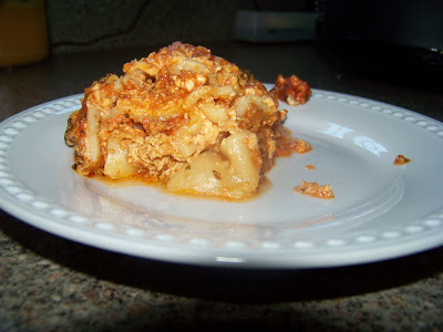 I based my meal off of Stephanie’s recipe but varied mine a little bit. I used 9 lasagna noodles, you want the regular noodles not the oven ready. I used one jar of spaghetti sauce but added some tomato sauce to it, I was hoping to add some diced tomatoes but I didn’t have any on hand. I added some crushed garlic to the spaghetti sauce as well. I used about 9 meatballs chopped up and threw those in the spaghetti sauce. I used a larger container of cottage cheese, mixed in two eggs and some parmesan cheese.