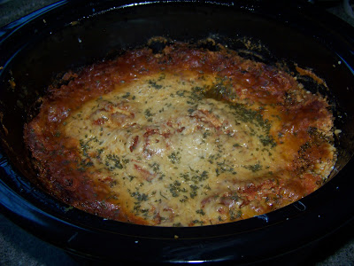 Mine was a bit watery but that could be from my scary chunky shredded myself mozzarella that came from the freezer. My kids really liked this, well at least 3 out of 4 did which is a rarity in this house. In fact, the eldest child asked if we could have this for dinner every week. I will be making this again, I liked throwing it all together in the crock pot and then walking away for 4 hours. I let it sit for another hour after it was done on the warm setting and it was still hot and yummy. If you have any questions, I’d be happy to answer them. If you try this, I’d love to know what you thought so please feel free to come and leave a comment! Enjoy!