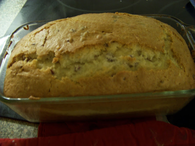 Bake at 350o for 65 to 75 minutes. Cool 15 minutes and then remove the bread from the pan.
