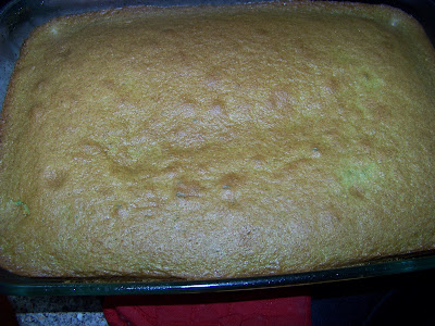 Bake according to the box directions.  It will look a funky tannish green color when it’s done, don’t worry, no one will see that!