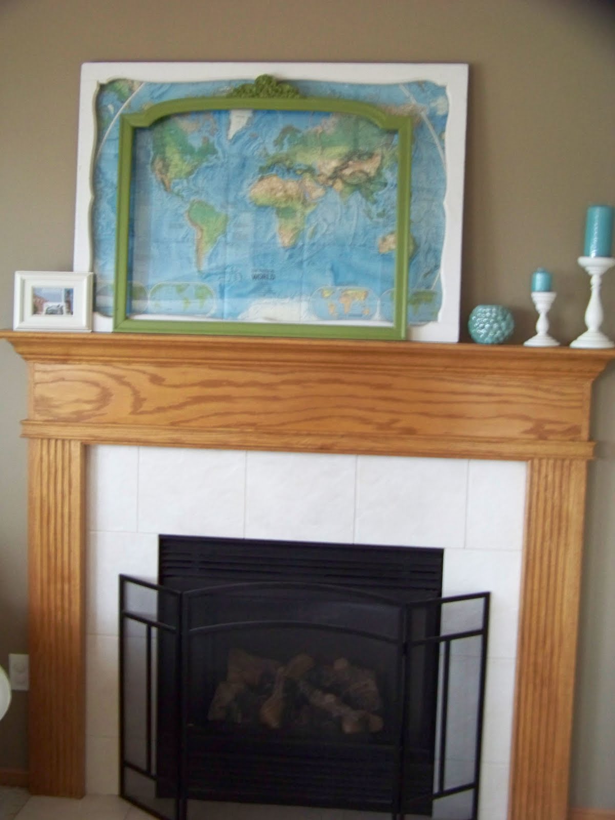 I do have some barn wood sitting in my garage….hmmmmmm. I am hoping to find a big mirror for over the fireplace and of course I will be painting all the oak right out of this room sometime soon. Like before 2013, at least.