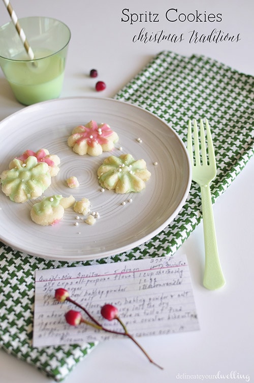 Amy from Delineate your Dwelling shares with us her grandma’s spritz cookie recipe.  It reminds me of my grandma and spritz cookies as well!  If you haven’t made spritz, I suggest you do!