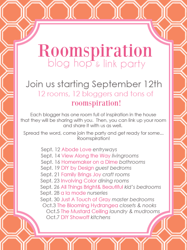 On Monday I will be showing off my new (hope I finish it this weekend) entryway for the Romspiration party that is kicking off at Abode Love! Make sure you get your own rooms ready or just head over there to check out what others are linking up!