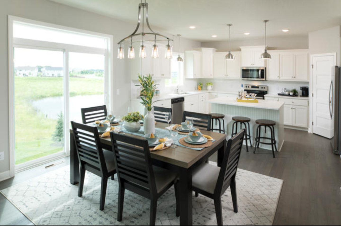 Well friends, it’s been a hot minute. The fireplace is done and I’m hoping to post about that soon. Somehow we managed to finish it up after Thanksgiving and we were able to enjoy a beautiful fireplace during the Christmas season. The girls were home from college and it was really nice to just hang out. Unfortunately after New Years, covid came calling to our home. Three out of four of us had it. I would say, it was very much like the flu. Thankfully it’s over with and we are all doing well. Somehow the older three managed to not get it so that was good. While sitting in the living room for most of the day and staring at the kitchen/living room set up, I decided it was time to make some changes. This is what the kitchen looked like when it was the model home.