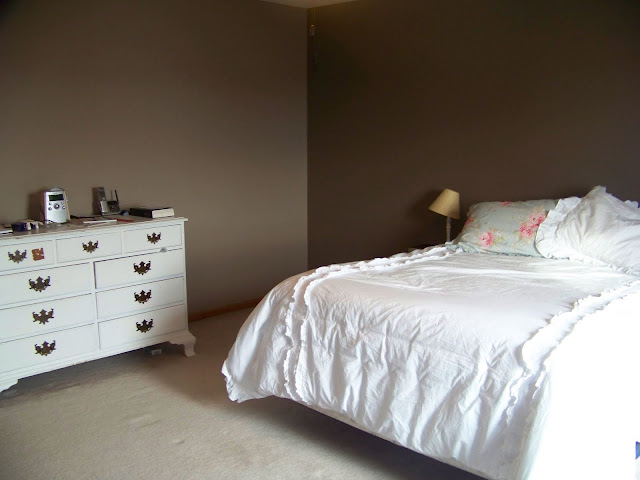 One of the reasons the dresser worked well at the end of our bed is that the footboard does not attach to our frame.  We need to buy a new frame for it to attach to.  So now here’s a photo without the footboard:
