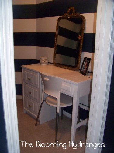 The only thing is now I have an empty wall in our bedroom that I have no idea what I should do with.  It’s almost too small for furniture like chairs and I don’t really want to add another dresser.  I could move the desk/vanity out there but then the closet is really empty looking.  We did move the dresser at the end of our bed over to that wall but it was too small for the big wall.  The bed was moved to that wall as well but I didn’t like it.