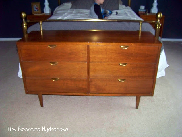Can you believe I scored this dresser, for free?  That’s right peeps, someone didn’t want this anymore and I found it at 2am so I emailed them.  They sent out a blanket email at 7 am to all 35 people that emailed them regarding the dresser.  I woke up at 8:30, read the email, called them and said, I’ll be right there!  I couldn’t believe it was still available.  My hubby, who loves his sleep, was so awesome to get up and go with me to get the dresser.  I knew that he’d rather sleep than load up a dresser but he loves me more than sleep.