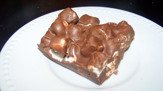 Melt together in the microwave the chocolate chips, butterscotch chips and peanut butter. (I melted this together on the stove top and it didn’t turn out well so use the microwave, trust me on this!) Mix in the marshmallows and peanuts. Pour into a buttered 9×13 pan and let set in the fridge.