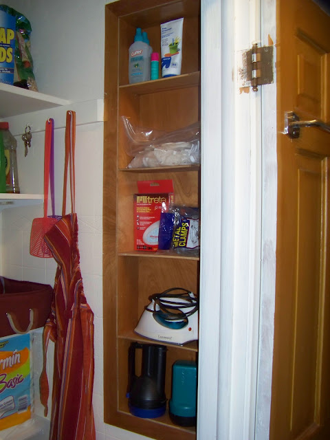 Across the hall from this closet there is a little shallow closet that looked like this inside:
