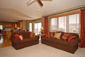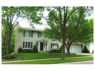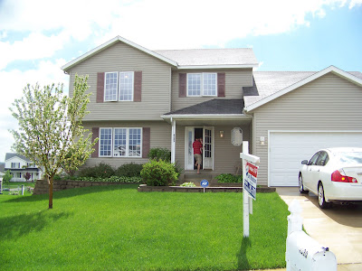 Our second favorite house is quite different than the first one. It was in a newer subdivision, has the traditional honey oak trim and lacked the character of the first house. But it had some things we liked as well like a big fenced in backyard, two bedrooms in the basement with a bathroom, walk out family room and office area for my hubby. The main floor has a nice open kitchen and family room area with a fireplace and a walk out deck. Upstairs are three bedrooms with two bathrooms. The house is on a street that ends in a cul de sac and has a lot of nice looking homes as well. Here is the outside: