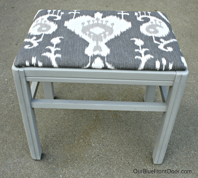 We recovered one of her stools with some fabric I had on hand and some of the AS Paris Gray paint. I stole this picture from Andrea, mine wasn’t as cute as hers.