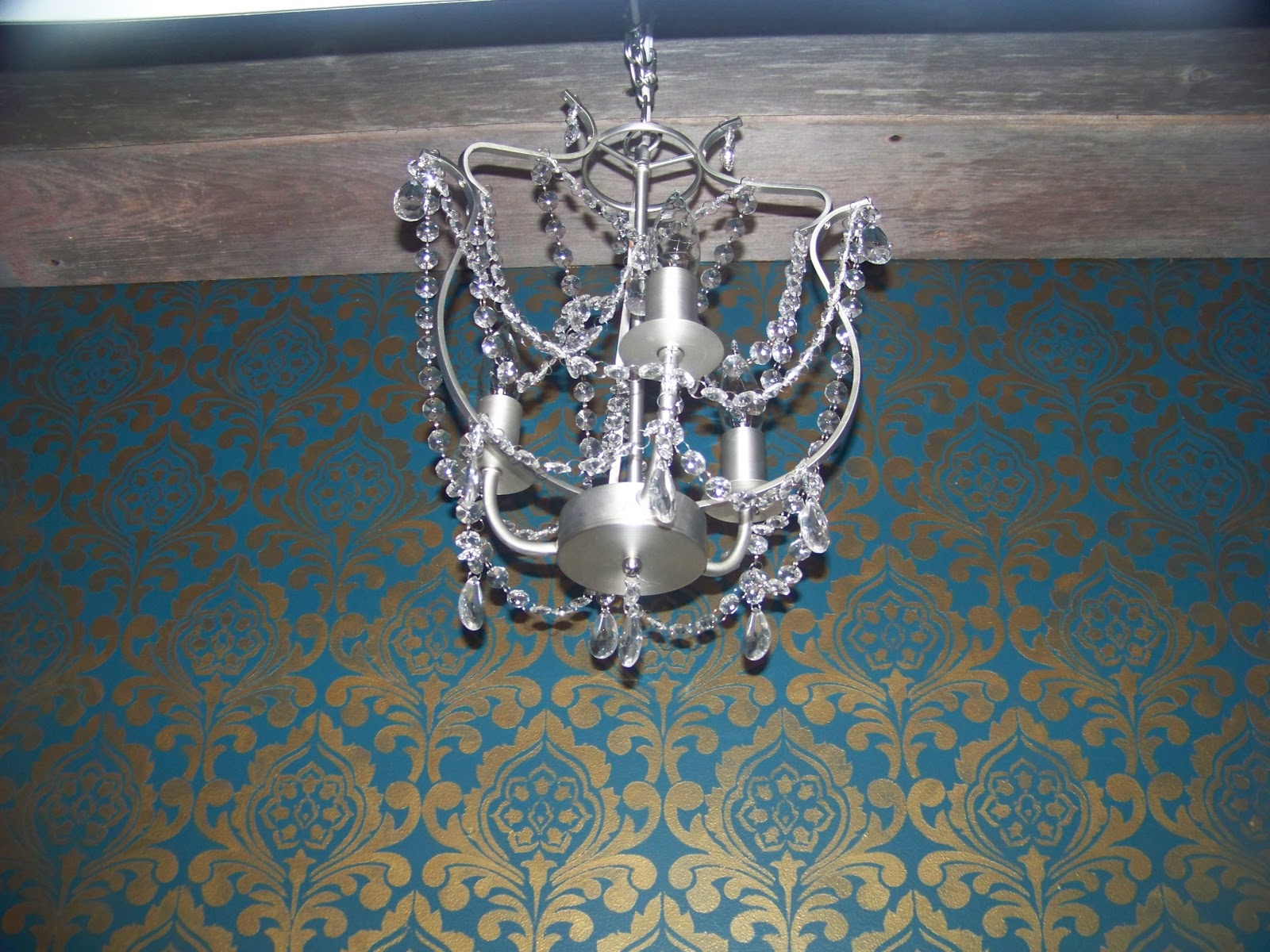 Your stenciled wall is amazing. What a transformation of that space. I LOVE it! And that IKEA chandelier is a great touch. Thanks for hosting the linky party today. Roomspiration has been SO MUCH FUN!