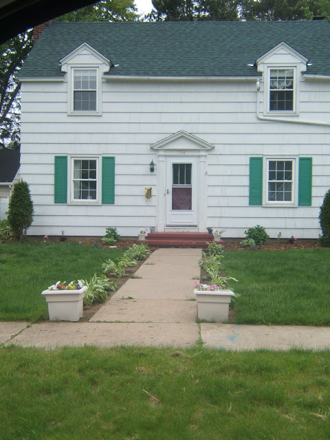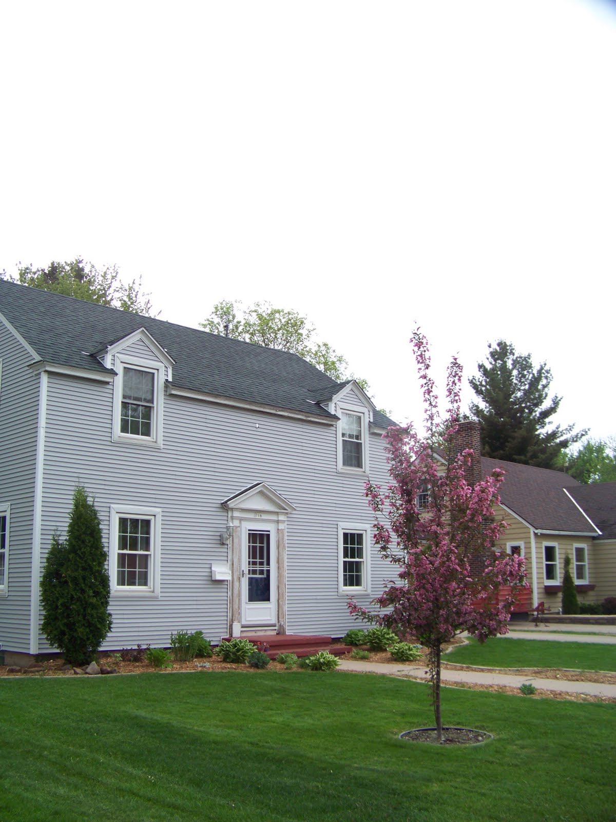 I am hoping that our neighbors will send us a picture of our house when the front is painted so we can update this post!  So that’s it, the really super long and intense siding project that would not have been possible without our neighbors, family and church friends helping us out! I was hoping to add shutters this summer and repaint the front door but we moved before I could do that.