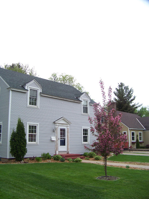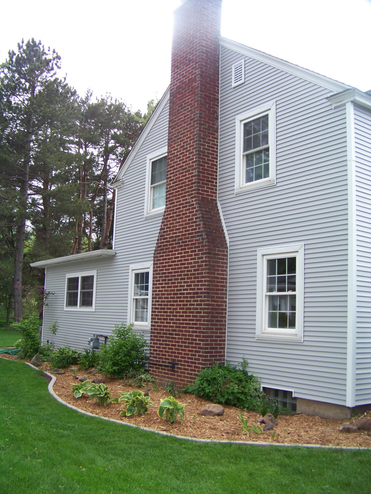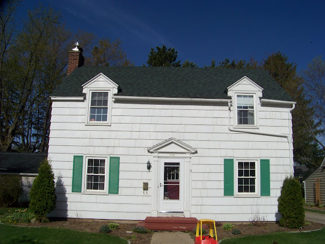 When we bought the colonial we knew that eventually the exterior was going to need some help. We liked the cedar shake siding but the previous owners had used a lot of caulk to fill in the cracks and the caulk actually was turning gray while the shakes were still white. The shakes were in rough shape and some were rotting, chipped off or had an alligator skin look going on. The shakes were supposed to be stained and not painted but they were painted and we really didn’t have the money to replace them. One of our options was vinyl siding, it’s affordable, pretty maintenance free and we he could do it himself! WOO HOO! We briefly considered doing vinyl shakes but the cost went up significantly and that just wasn’t in the budget, maybe in 15 years it will be.   The hubs  is quite handy and has done many wonderful projects in our houses but he has never touched a vinyl siding project well that is until this one.