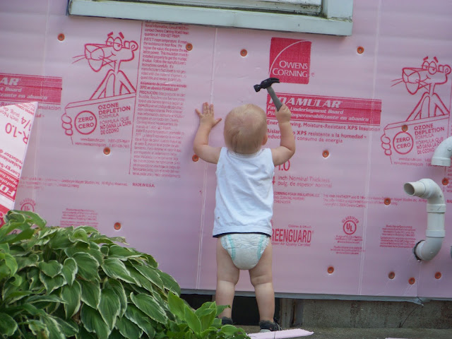 When we started this project towards the end of June I don’t think we had any clue that in the middle of September we would still be working on it! Although we did take two weeks of vacation in August, Mr. A did not touch the siding once during those two weeks!  He deserved a vacation,  he worked almost every night after work until dark and on weekends, all summer while the kids and I were off at the grocery store park or getting ice cream. We also had many friends, neighbors and some family who contributed time and energy on our project.   I hate to think where we would be without there help!