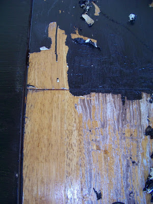 Here is what the paint looks like as it is coming off the furniture, a big gooey mess.
