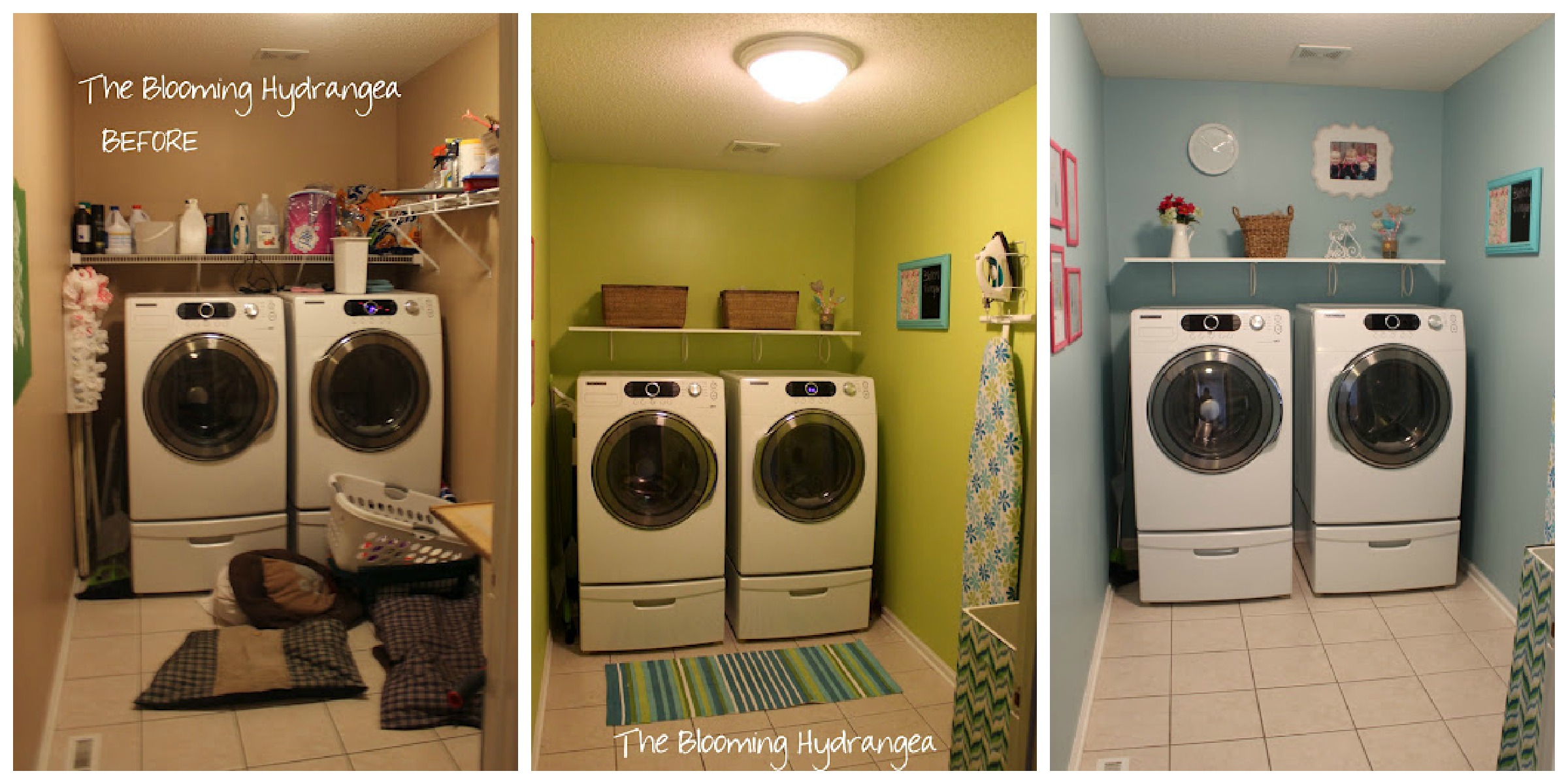 I love the color! I think it makes the room look soft and clean! Our laundry room needs to be remodeled. Until I get to it, I will use the need for remodeling as an excuse to not keeping up with the laundry!