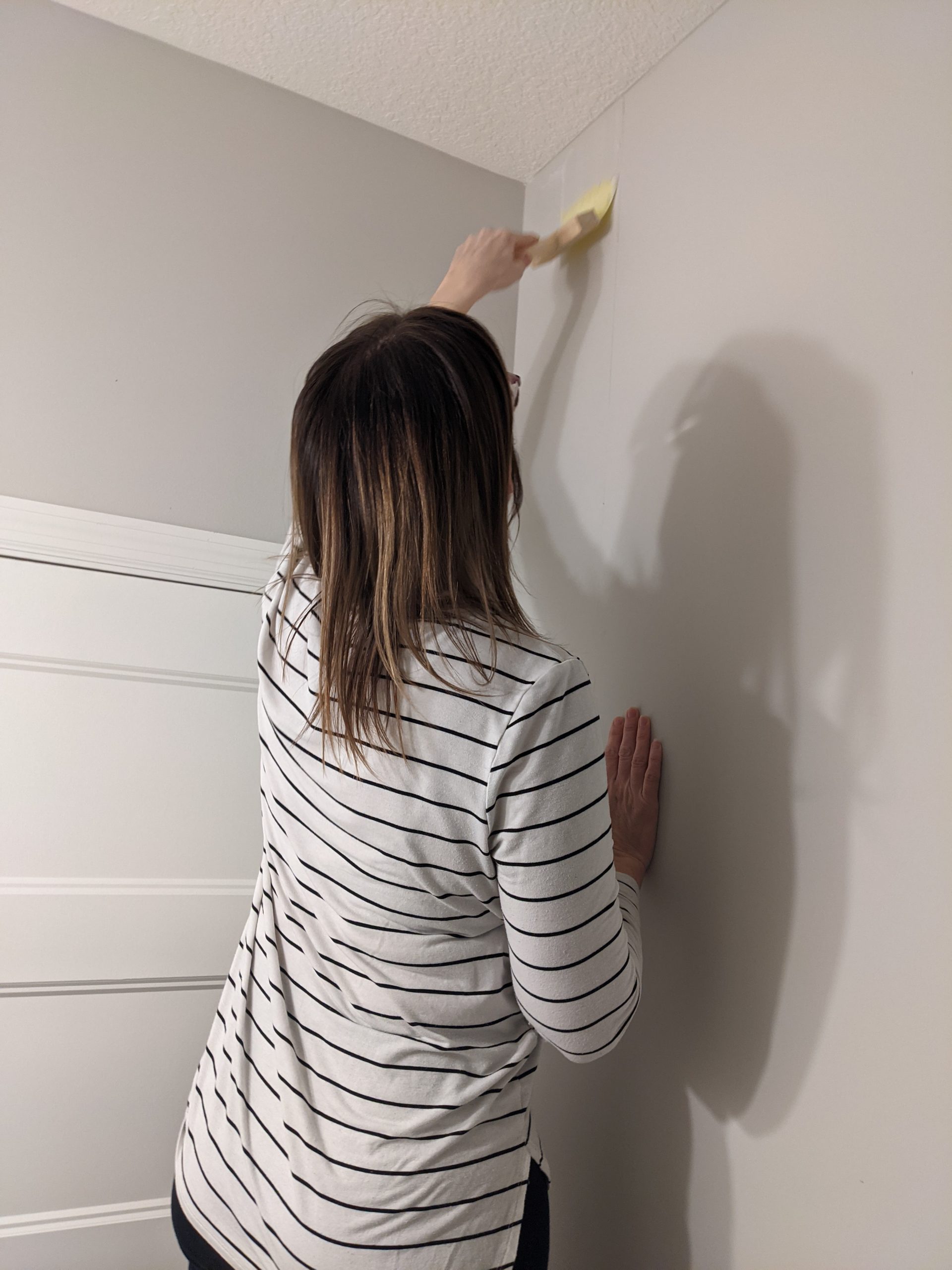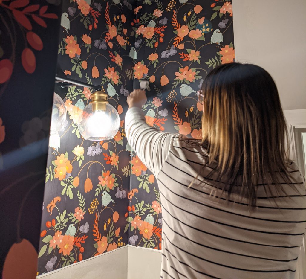 We decided to do the entire powder room instead of just one wall. Our process was a little more time consuming this way but we absolutely love it! The seam roller was probably my favorite tool to use. You can not even tell where the seams are on the wall, it’s awesome!